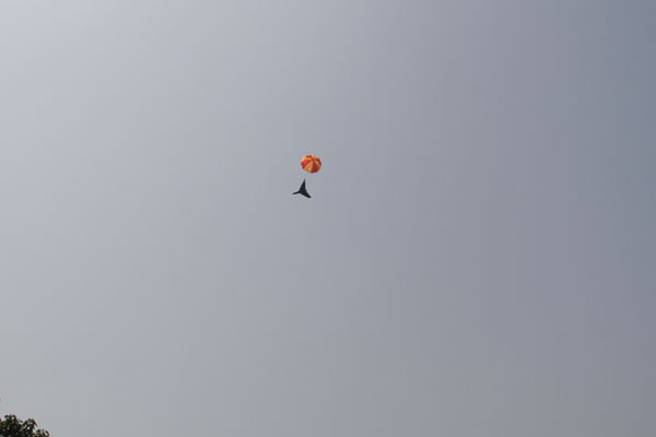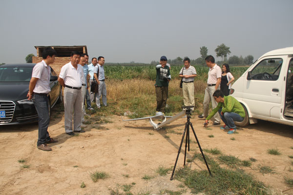 到達武功項目,正值艷陽高照,大隊領導為項目職工發(fā)放了西瓜、啤酒、飲料等防暑降溫品,對全體職工表示了慰問。隨后,大家來到工作現場,目睹了航測飛機的發(fā)射及飛行全過程。飛機在工作人員的遙控下彈射升空,盤旋兩周后消失在視線,放在面包車內的一臺電腦記錄著它的飛行軌跡,20多分鐘后,大家終于聽到了飛機的轟鳴聲,緊接著,飛機重新回到了大家的視線,誰也顧不上擦去頭上被火熱的太陽炙烤得不斷冒出的汗水,只仰頭循著飛機的飛行方向,看著飛機盤旋、降落、熄火、穩(wěn)穩(wěn)地著陸?;氐巾椖坎繒h室,大家迫不及待地圍坐在電腦前,隨著技術人員的操作,一張張清晰的立體照片呈現在大家眼前,飛行圓滿成功!