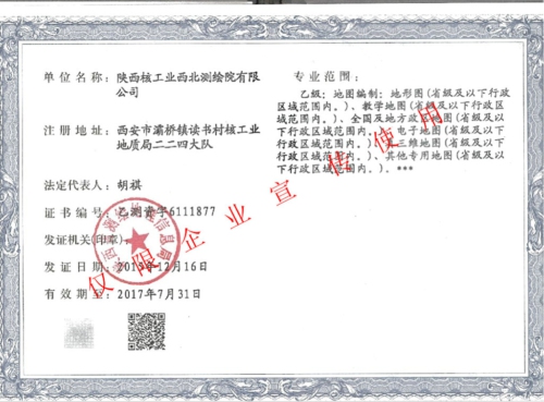 陜核西北測(cè)繪院取得地圖編制乙級(jí)資質(zhì)