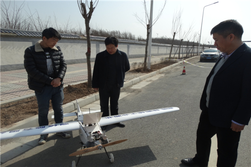 在飛行現(xiàn)場,操控手對“陜核鷹”的性能及相關(guān)參數(shù)進行了詳細介紹:“陜核鷹”全長2.05米,翼展長度2.6米,最大平飛速度110km/h,飛行海拔可達4000米,拍攝照片地面分辨率達20厘米,飛行性能良好。在一切準備就緒后,“陜核鷹”帶著所有人的期盼,以驚人的速度起飛并沖向天空;在500米高空,“陜核鷹”始終嚴格按照操控手設(shè)定的航行路線翱翔;兩個時段后,“陜核鷹”安全平穩(wěn)著陸。操控手將機身中的照相機取出,在場人員清晰地看到了照片中地面標識線等地物。最后,鄭副總向在場人員宣布:“陜核鷹”首次試飛成功!