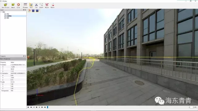 三維實(shí)景數(shù)據(jù)(街景數(shù)據(jù))和采集軌跡POS數(shù)據(jù)的多圖層疊加: