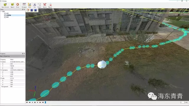 著色點(diǎn)云數(shù)據(jù)和采集軌跡POS數(shù)據(jù)的多圖層疊加: