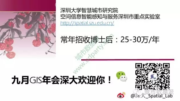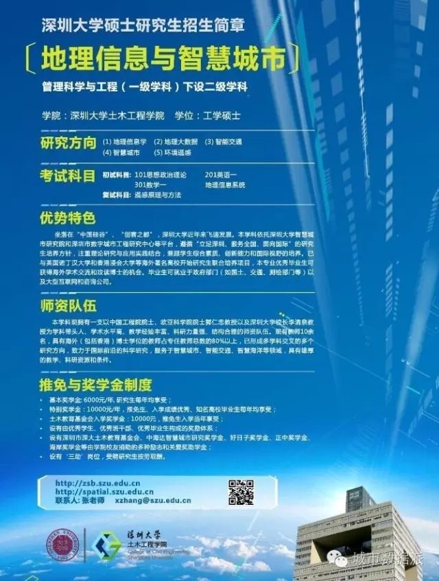 深圳大學(xué)2017年在全國(guó)率先招收“城市空間信息工程”本科專業(yè),還有“地理信息與智慧城市”碩士點(diǎn)(2016年招生)!深大棒棒噠!特別提醒:9月的《2016中國(guó)地理信息科學(xué)理論與方法學(xué)術(shù)年會(huì)》將在深圳大學(xué)舉辦,會(huì)議正免費(fèi)注冊(cè)中,點(diǎn)擊文末的“閱讀原文”查看會(huì)議詳情報(bào)名方式哦!