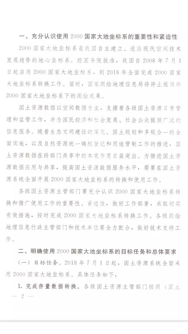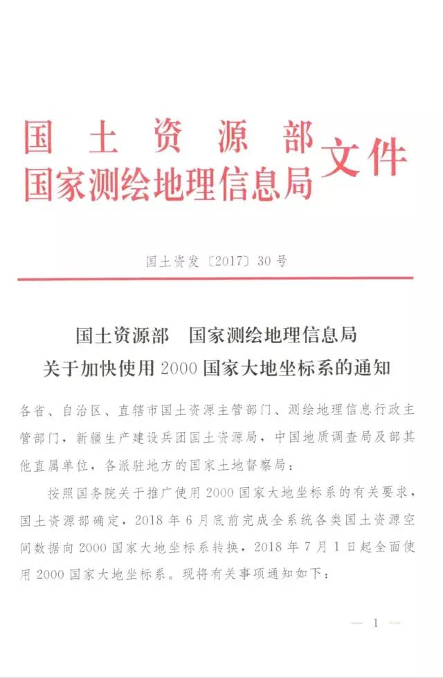 【通知】國(guó)土資源部、國(guó)家測(cè)繪地理信息局:關(guān)于加快使用2000國(guó)家大地坐標(biāo)系的通知