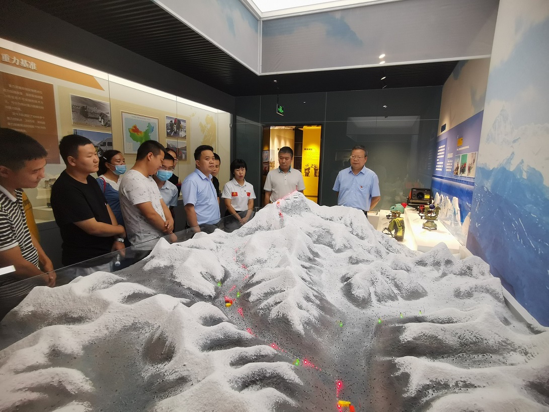 國(guó)測(cè)一大隊(duì)精神展示室包括矢志不渝為國(guó)測(cè)繪、艱苦奮斗開路先鋒、甘于奉獻(xiàn)薪火相傳、黨建鑄魂政治保障、與時(shí)俱進(jìn)開拓創(chuàng)新、測(cè)繪地理信息服務(wù)成就展、測(cè)繪技術(shù)發(fā)展簡(jiǎn)史七個(gè)篇章,講解員通過每個(gè)篇章圖文并茂的展板,生動(dòng)講述了國(guó)測(cè)一大隊(duì)的發(fā)展歷史、光輝成就以及成就背后的感人故事,尤其重點(diǎn)講述了2020珠峰高程測(cè)量外業(yè)觀測(cè)實(shí)施過程中的艱辛故事。2020珠峰高程測(cè)量外業(yè)觀測(cè)成果是國(guó)測(cè)一大隊(duì)和登山隊(duì)的同志們勇闖生命禁區(qū)測(cè)得的,尤為珍貴,這極大地激發(fā)了中陜核集團(tuán)全體參觀人員做好測(cè)繪工作的斗志和決心。