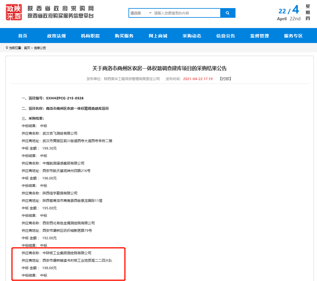 五一國(guó)際勞動(dòng)節(jié)來(lái)臨之際,在公司領(lǐng)導(dǎo)班子支持下,在經(jīng)營(yíng)發(fā)展部和新疆分公司同仁的努力下,再次傳來(lái)中標(biāo)喜訊。中陜核測(cè)繪院憑借突出的業(yè)績(jī)、雄厚的技術(shù)實(shí)力以及良好的市場(chǎng)信譽(yù)脫穎而出,成功中標(biāo)“商洛市商州區(qū)房地一體權(quán)籍調(diào)查建庫(kù)項(xiàng)目第七標(biāo)段”。