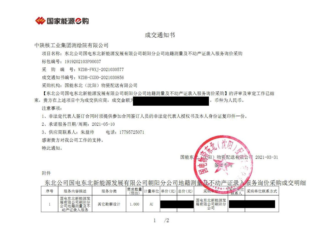 在清明來臨之際,新疆分公司傳來中標(biāo)喜訊,測(cè)繪院在國(guó)家能源招標(biāo)采購中紛紛中標(biāo)。我公司成功中得“東北公司國(guó)電東北新能源發(fā)展有限公司朝陽分公司地籍測(cè)量及不動(dòng)產(chǎn)證錄入服務(wù)詢價(jià)采購項(xiàng)目”。